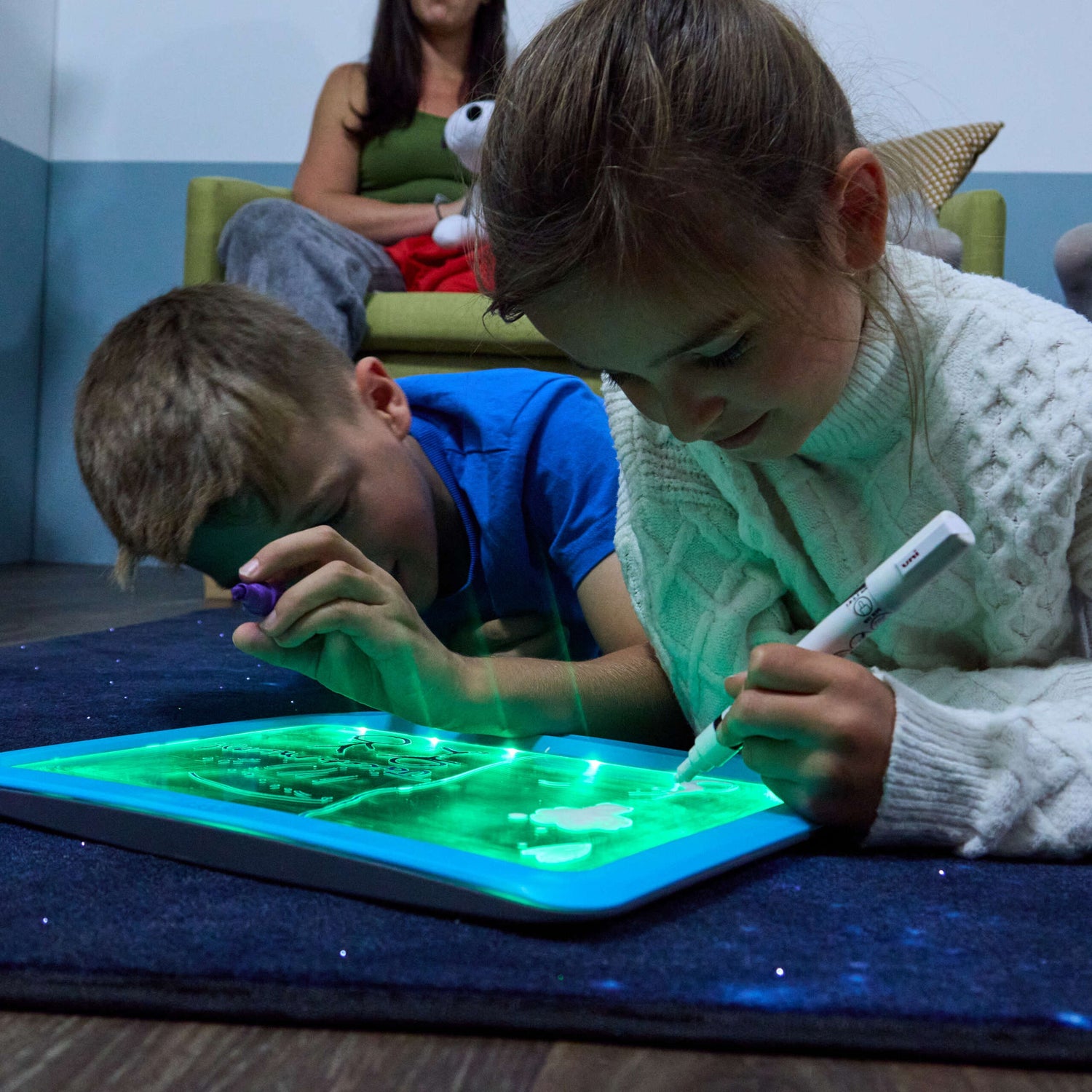 Helendav kirjutusalus värvivalikutega muudab joonistamise- ja kirjutamise lihtsamaks.