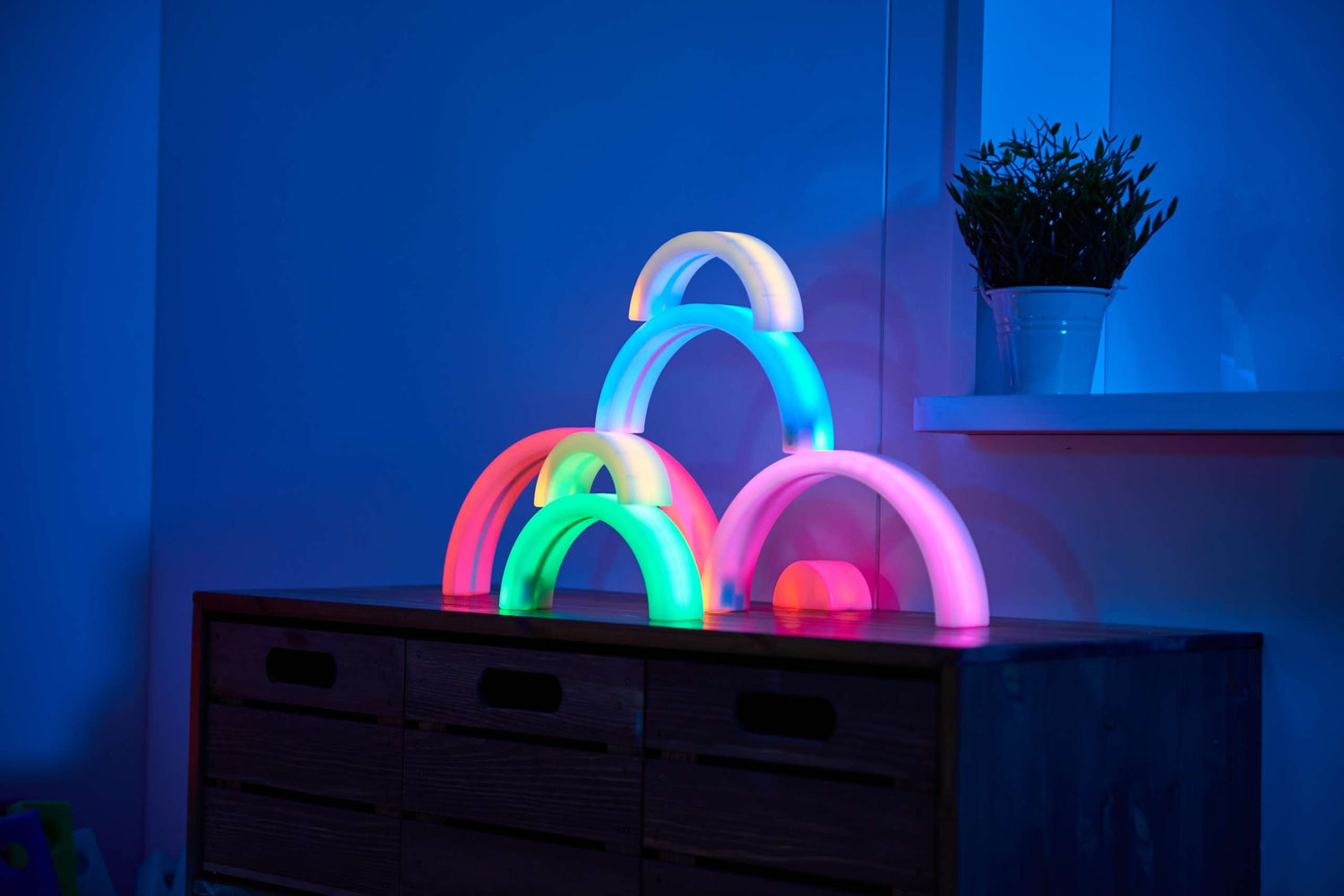 TTS seitsmest helendavast vikerkaarest koosnev komplekt sobib hästi avatud konstruktsioonimänguks ja väikemaailma tegevusteks. Vikerkaare kujundid sobivad sildade, tunnelite ja piiride ehitamiseks. Helendus loob tugeva visuaalse fookuse sensoorseks mänguks hämaras. Sobib lasteaeda ja algklassidesse.