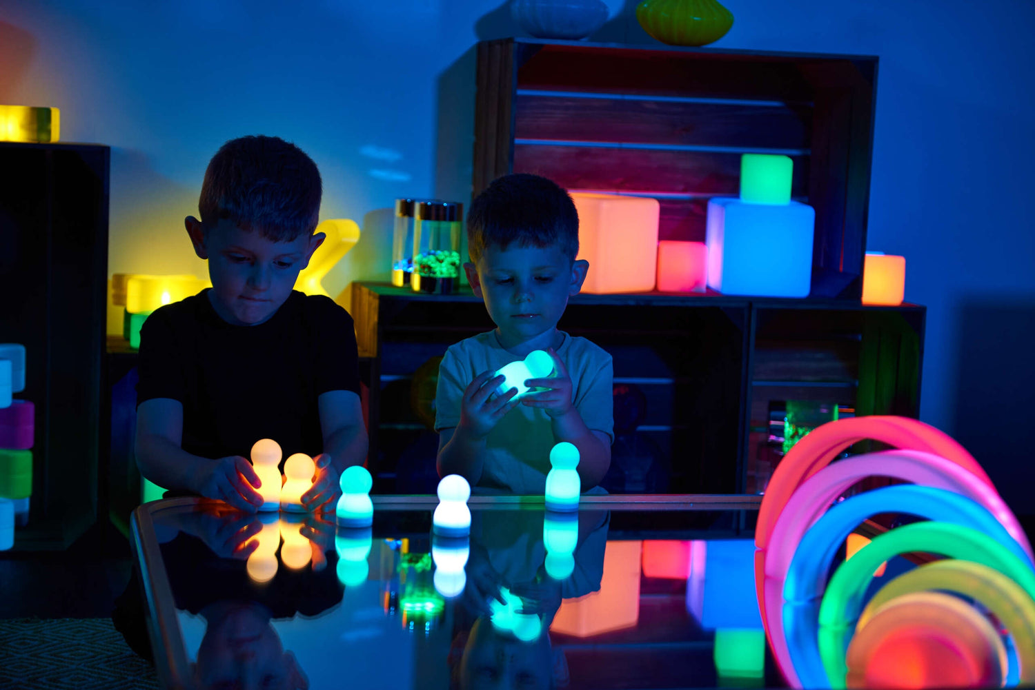 Komplekt sisaldab: 3 väikest tegelast, 3 suurt tegelast, 1 laadimisalus ja 1 laadimiskaabel (USB-B - USB-A). Laadimine 2 tundi ja kuni 4 tundi helendust.