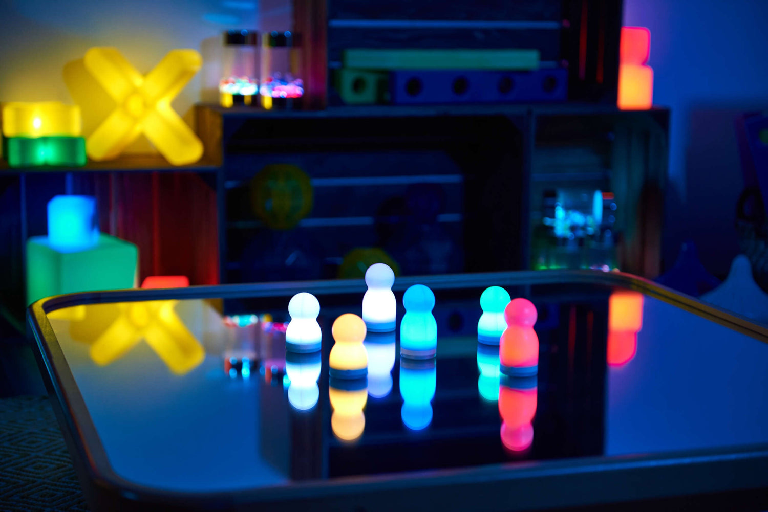 Laetavad helendavad tegelased värvi- ja pöörlemisrežiimiga muudavad jutumängu interaktiivsemaks ja sihipärasemaks.