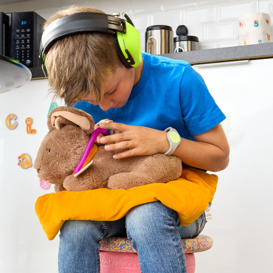 "TTS 1,36kg kaaluv jänesekujuline raskusloom koos väikese 907g raskustekiga on loodud andma ühtlast sügavat survet koolipäeva jooksul. Kasuta raskuslooma ja tekki, et vähendada nihelemist ning toetada keskendumist rühmategevustes, iseseisvas töös ja rahunemisalas. Pehme veluurpind ja PVC graanulitega täidis teevad komplekti vastupidavaks igapäevaseks kasutuseks. Puhasta pühkides niiske või antibakteriaalse lapiga. Loom ja tekk on eraldi, seega saad survet lihtsasti kohandada lapse vajaduse järgi.