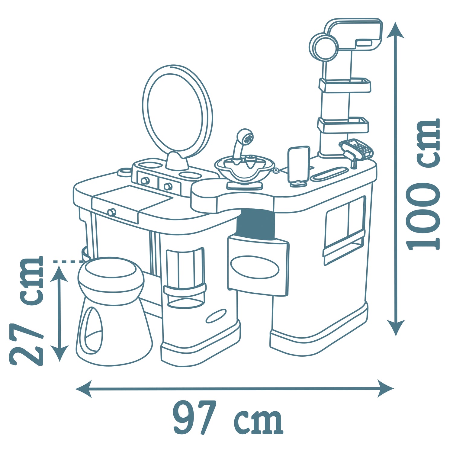 Mitmekülge ilukeskus, millega laps saab erinevaid rolle mängida - juuksurit, müüjat, meikkarit.