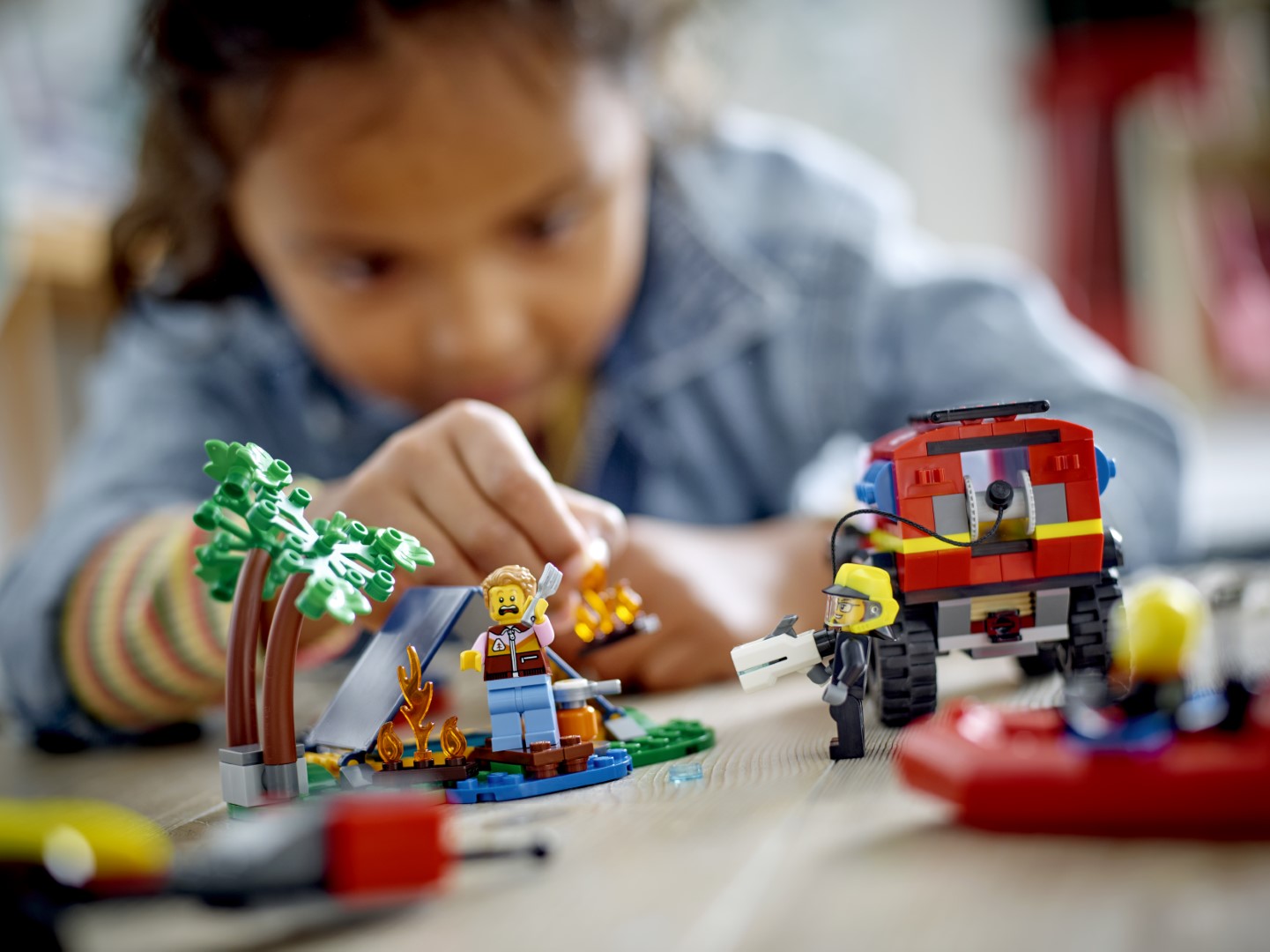 Selle LEGO® City komplektiga, mis sisaldab 4x4 tuletõrjeauto mänguasja, päästepaati ja telki, lisaks matkaja ja tuletõrjuja minifiguuri, ootavad sind tuletõrjeseiklused.