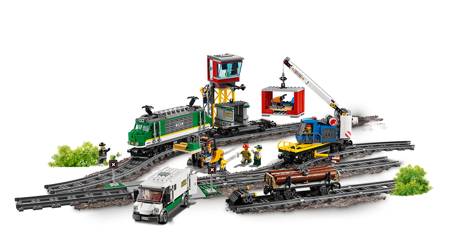 Vea LEGO® Citysse kaupa mootoriga kaubarongiga, mille komplekti kuulub 4 rongivagunit, 33 raudteedetaili, juhtimiskeskus, rahaveoauto, kahveltõstuk ja 6 minifiguuri.