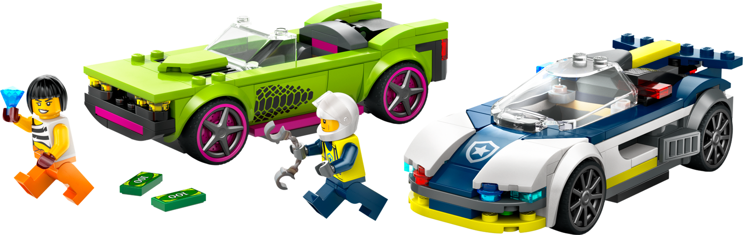 LEGO City Politseiauto ja muskelauto tagaajamine