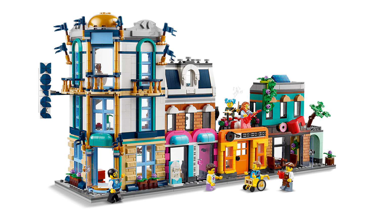 Külasta linna selle LEGO® Creatori kolm-ühes peatänava ehituskomplektiga, seejärel ehita see ümber neljakorruseliseks art deco stiilis pilvelõhkujaks või võlvkaarega turutänavaks.