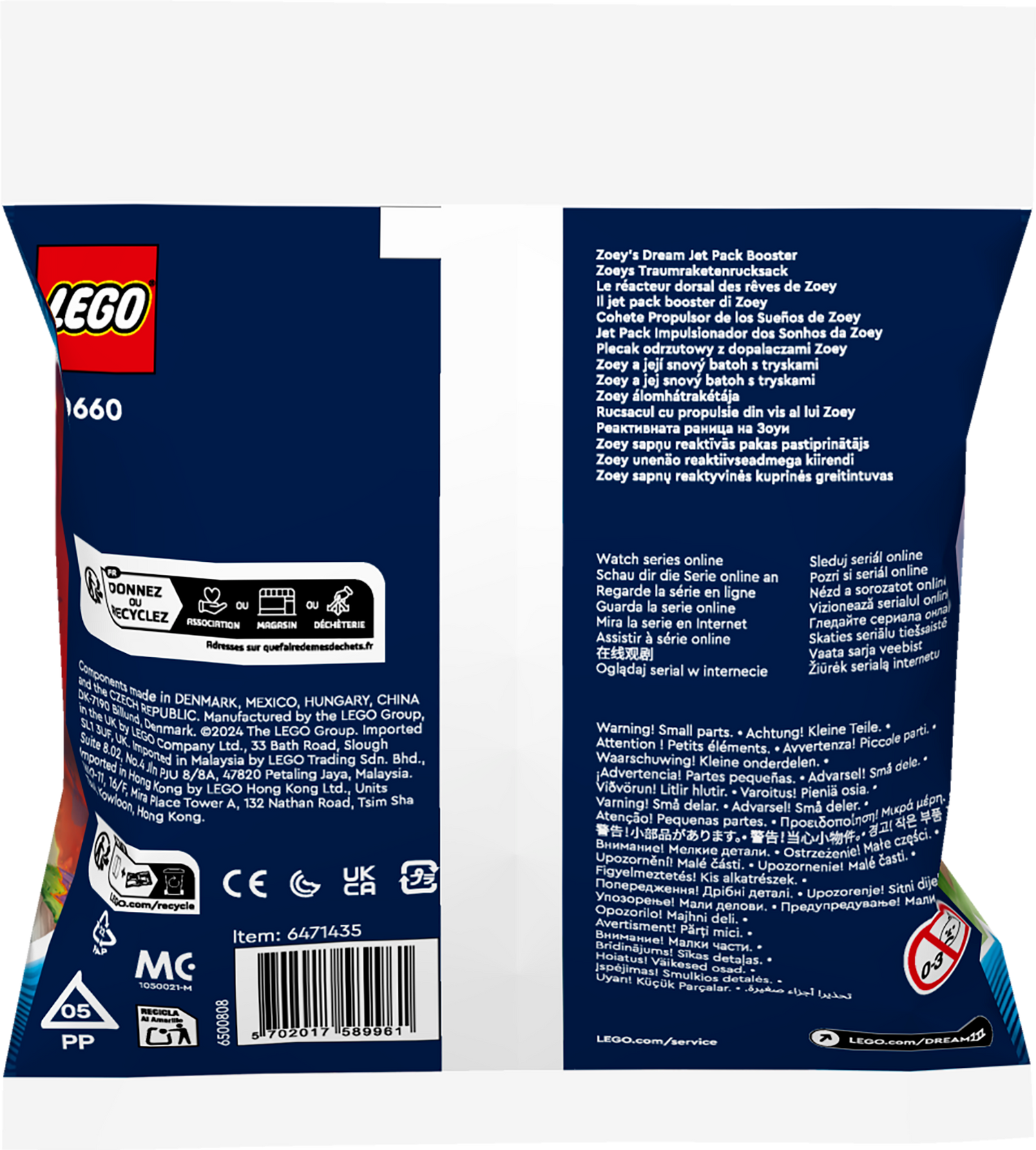 Lase kujutlusvõimel lennata komplektiga LEGO DREAMZzz Zoey unenäo reaktiivseadmega kiirendi (30660), mis sisaldab Zoey minifiguuri koos reaktiivseadmega.