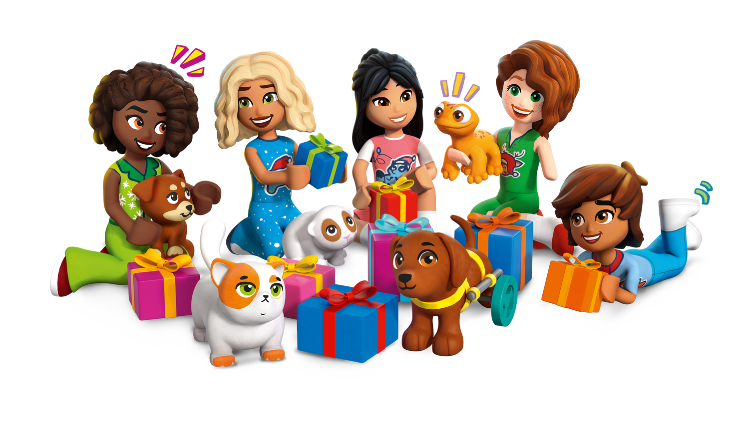• Komplektis on 5 LEGO® Friends tegelast – Aliya, Autumni, Liann, Nova ja Leo mininukud ning 5 LEGO looma: 2 koera, merisiga, geko ja kass