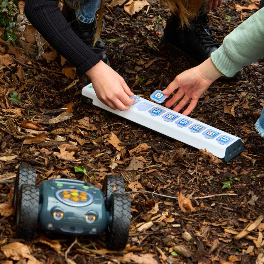 Vastupidav põrandarobot ja käsuplaadid teevad ekraanivaba programmeerimise ja koodi silumise lihtsaks.