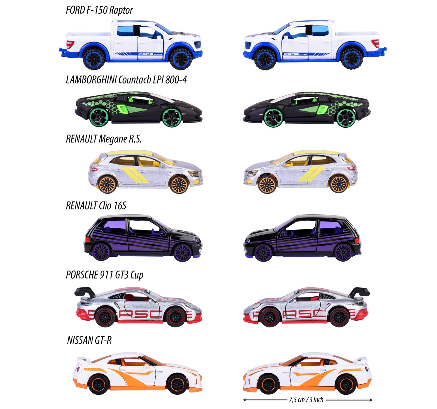 Valikus on kuus eksklusiivset ametlikult litsentseeritud mudelit (Renault, Porsche, Ford, Nissan, Lamborghini), mis on valmistatud detailitäpselt ja vastupidavalt. Erilise lisandväärtuse loovad survevalumeetodil valmistatud autod pöörlevate rataste ja vedrustusega, avatavad detailid koos pilkupüüdva kahevärvilise disainiga ning iga mudeliga kaasas olev kollektsionääri kaart põhiandmetega.